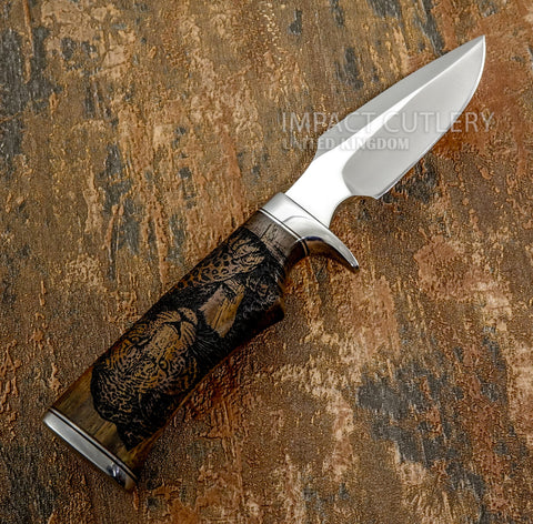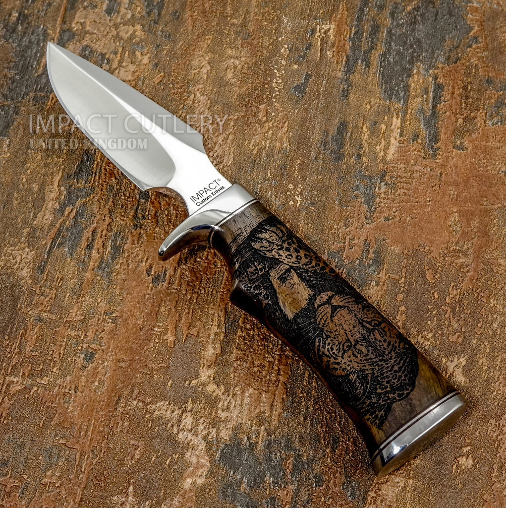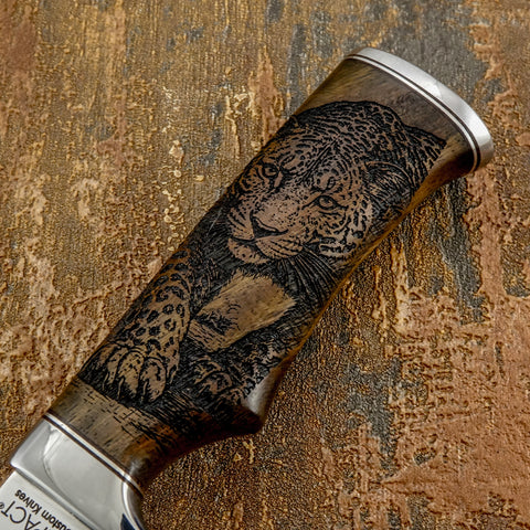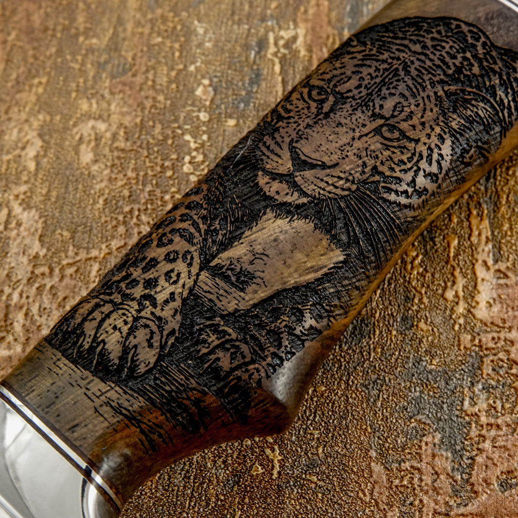 • Handle Material: Deeply engraved rosewood with leopard wildlife artwork